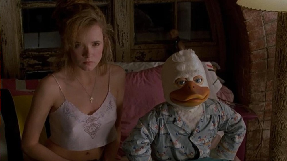 Of course, after Howard saves Beverly from a bout of ‘alley rape’ (um…kids movie?) from a pair of punk douchebags (using his Quack-Fu…no bullshit), Sexy Human and Freaky Duck embark on a series of wacky, comic book-like adventures (go figure), that result in these choice shots: